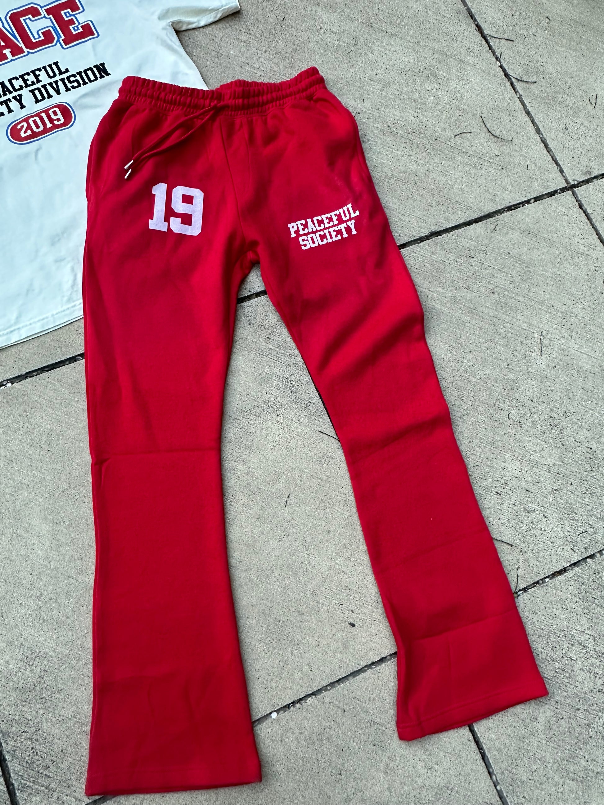 Red ‘Peaceful Society 19’ Stacked Sweats